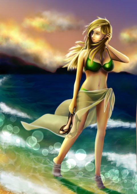撮影 medibang.com/picture/xc2108… #ARTstreet #MediBang #海 #2021年7月例コンテスト:水着 #厚塗り挑戦 #金髪美女