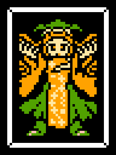 ふっかつちゃん 初心者を見つけてはクソ火力のさいこふぁいなるでちょっかいをだしてくるいやなやつ。 #pixelart #ドット絵