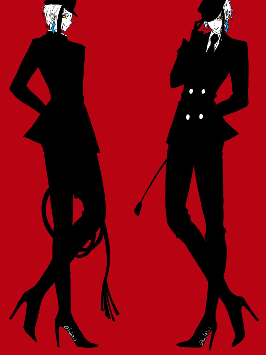 看守風フロイド と、前回のジェイドと合わせたやつ 前回RTや♡沢山ありがとうございました🙇♀️ #twstファンアート #ツイステファンアート