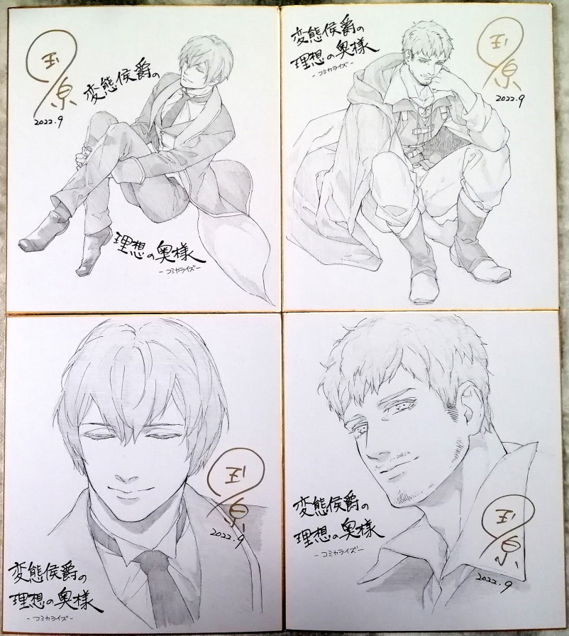 【変態侯爵の理想の奥様コミカライズ】 フェア用のイラスト入りサイン色紙を描きました✏️ 9/2~10/31書泉さんにて展示&抽選プレゼントされる予定です✨お寄りになれる方は是非ご覧ください! 【Sonyaコミックスフェア】詳細⇩ shosen.co.jp/fair/188236/