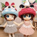 ニットアイスデコぼうし🍨💕 くまさん🐻&うさぎさん🐰 かぶっても 飾ってもかわいい🎀 #キューポッシュ #ねんどろいどどーる #オビツ11 #かぎ針編み #レース糸