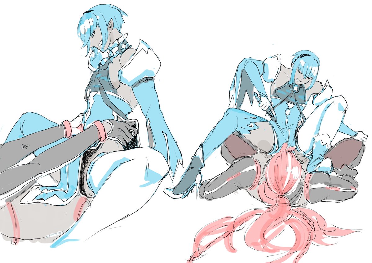 らくがき(ほむうる🔥💧) 2枚目は夏に自分の周りだけ冷気出してたら妖力使いすぎて倒れた💧。