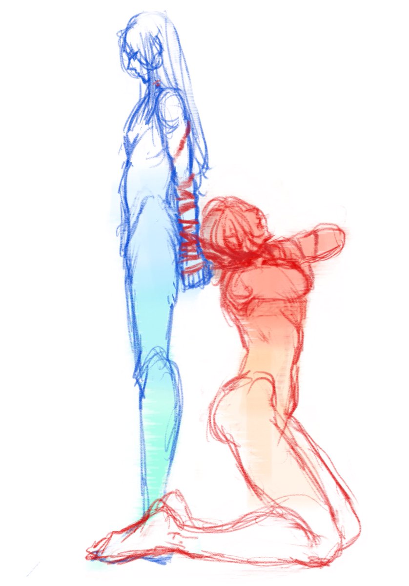 TLで🔥くんが💧くんを抱きしめてるとこが見たいってツイを読んでわかりみが深すぎて描きました😭 🧚♀️🔥の方がオッパイデカくてあったかそうだと思ったので(?)🧚♀️の2人になりました…