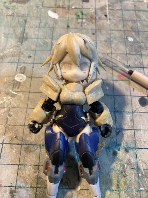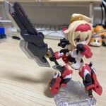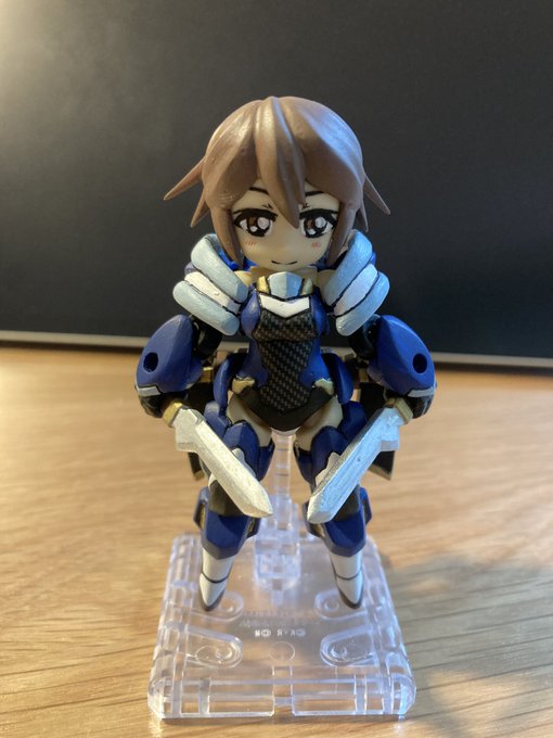 オリキャラ「カナメさん」完成しました〜 あるオーナーの看板娘をモチーフにしたDphoneで、アスラシリーズをベースにアレンジを加えて作られている。 主武装は小太刀「雷牙・風牙」、右手から雷を再現した攻撃、左手からは風を再現した攻撃を繰り出す魔法系の双剣士。 #デスクトップアーミー