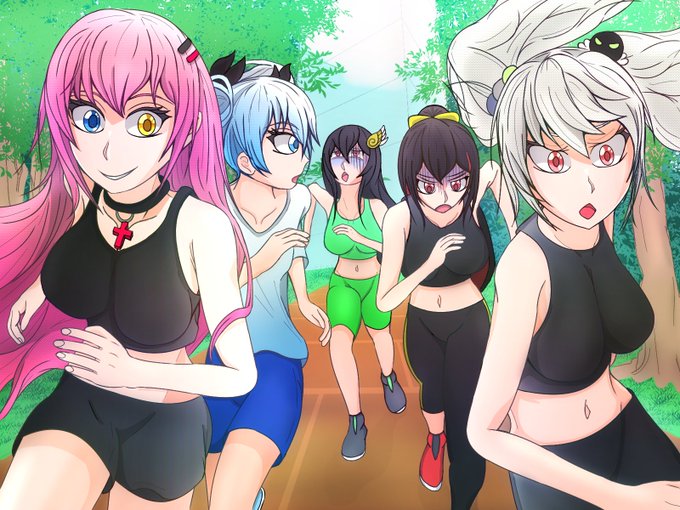 12 16 エミヴィラのジョギングに付き合う三馬鹿トリオを描きました。 #魔女兵器 22/03/15 15:36
