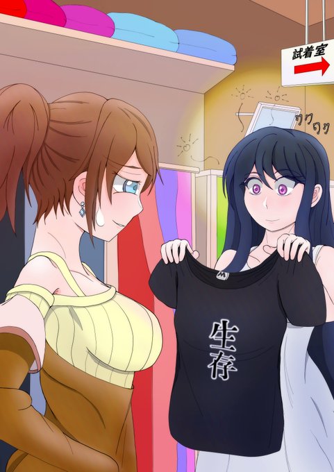 12 22 ミルクが着てる生存シャツ、実はバイジュウからの贈り物で、当初はそのセンスに引き気味だったら面白そうとか思いながら描きました。 #魔女兵器 22/07/01 17:59