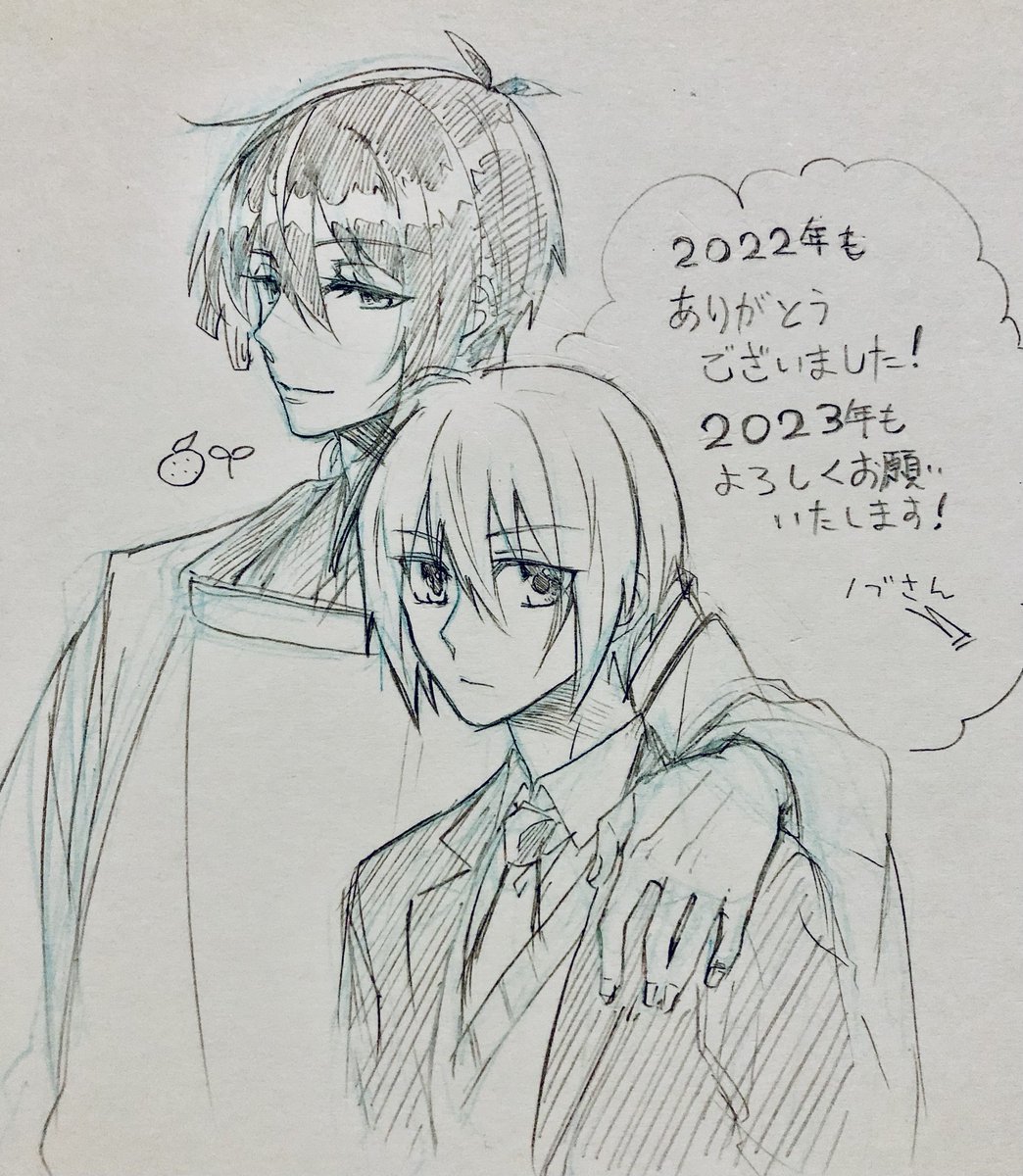 50 243 映画の予告とかあらすじ見て浮かんだ妄想は今のうちに描かないといけないと思って描いたみかんば🍊🌱(🌱いないけど) 23/01/26 17:18