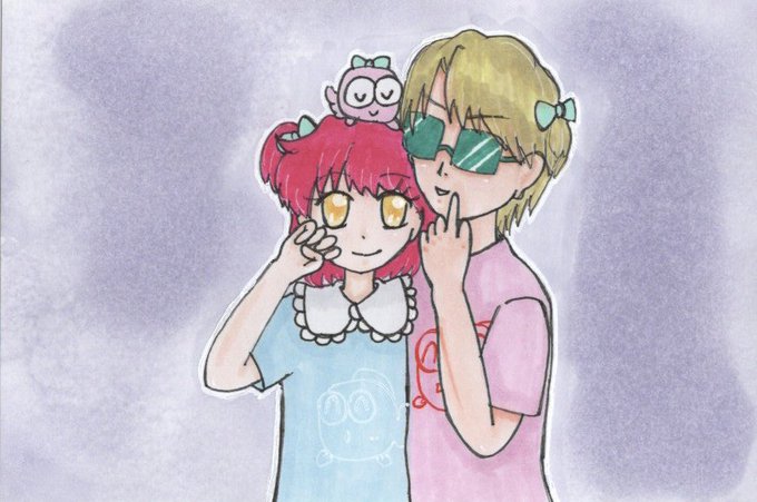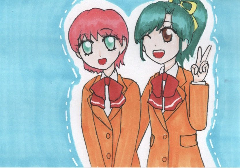お題➪復活 ハイスクール!奇面組の唯ちゃんと千絵ちゃんを描きました アニメがまた放送されたらいいですねえ #懐アニワンドロ #懐アニワンドロ20221022