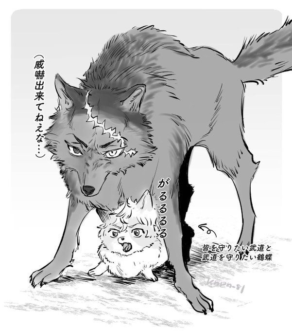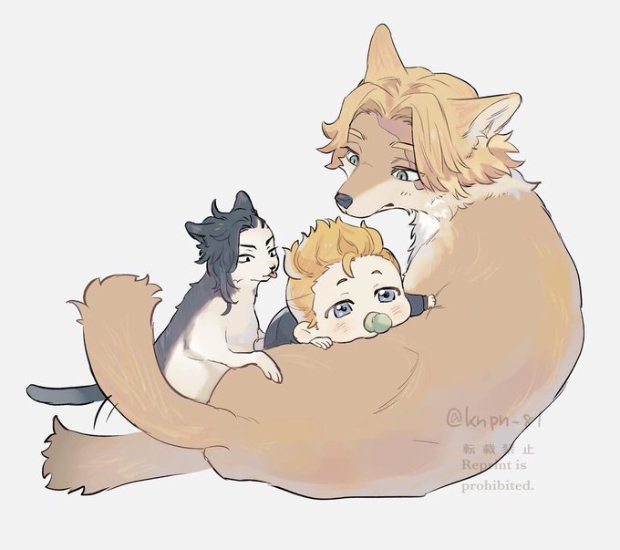 八武/みつ武(ケモ化) 一緒に遊んで嬉しい八とそれどころじゃない武と保護者の🍯