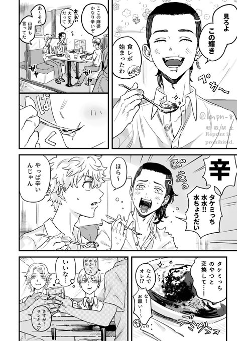 345 4354 八武/放課後のファミレスで末っ子ワガママかます八と中身歳上だからつい甘やかす武🐝🎋 高校生らしいことして欲しくて…… (🐶と❄️️は武が見える位置に座る、🐝は🎋の1口貰う為に隣を取りたがる)(幻覚) 22/10/26 22:20