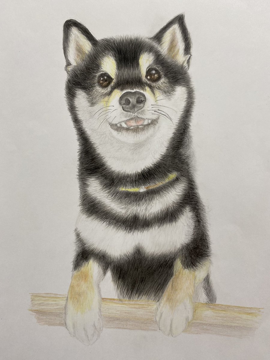 色鉛筆を走らせながら つい「可愛い、可愛い」と 呟いてしまう🥰 無心でこの子を描いている時が、大切な癒し時間です💕 #色鉛筆 #柴犬