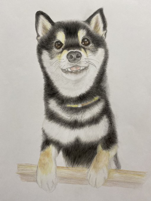 7 35 完成しました❣️ 旅先でリラックスモードの 黒柴まろくんです💕 #たむ小 #黒柴 #柴犬 #色鉛筆イラスト #色鉛筆画 22/11/20 12:14