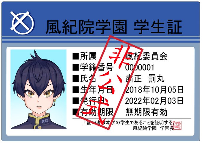 7 35 今年最初の1枚! お顔が証明写真っぽくなっちゃので開き直って学生証っぽくしてみたけど 罰丸くんグッズで学生証とか出してるんだろうか🤔🤔🤔 #粛静画 22/02/03 21:09