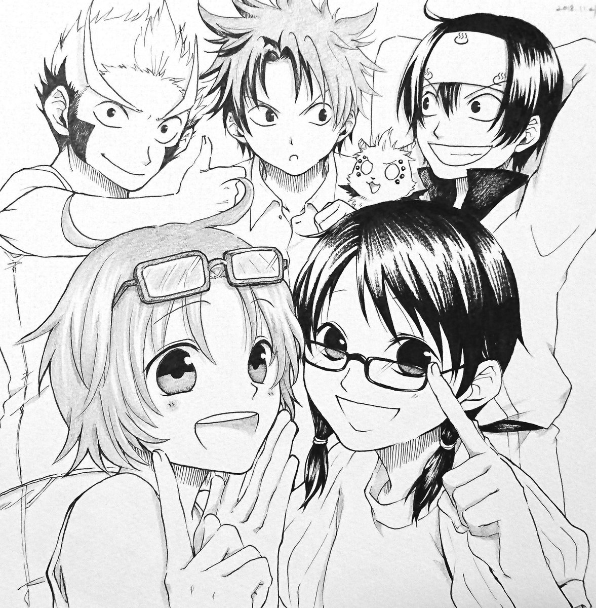 22 126 とっくにあけてしまいおめでとうございましたですが、2020年初描きです!今ハマっている作品の主人公(?)達みんな笑顔でお正月楽しんでください絵🎍笑 描けて満足!!😆 20/01/18 02:31