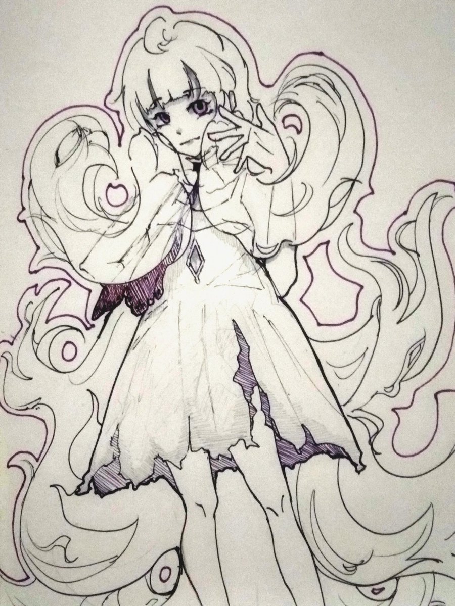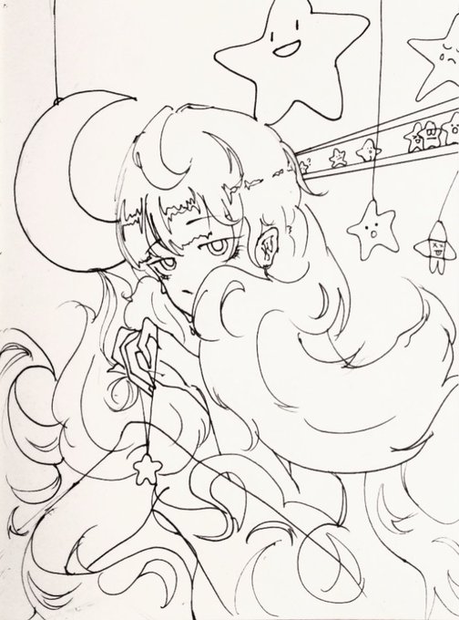 来看儿童画,描完线稿就不想上色了(😄)是和好友打电话的时候一边乐一边画的,线抖不怪我() #Endoujin #Reimural