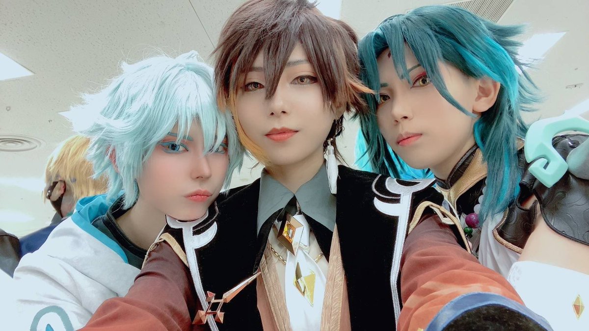 5 18 ※コスプレ 改めまして!26a!お疲れ様でした 璃月メンズで一緒にわちゃわちゃしてました 可愛い2人に挟まれてニッコニコな彩鍾離先生でした😌😌💕 見てくれ顔がいいだろ 重雲⇒まひたん 魈⇒さなち 22/03/01 20:30