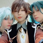 ※コスプレ 改めまして!26a!お疲れ様でした 璃月メンズで一緒にわちゃわちゃしてました 可愛い2人に挟まれてニッコニコな彩鍾離先生でした😌😌💕 見てくれ顔がいいだろ 重雲⇒まひたん 魈⇒さなち