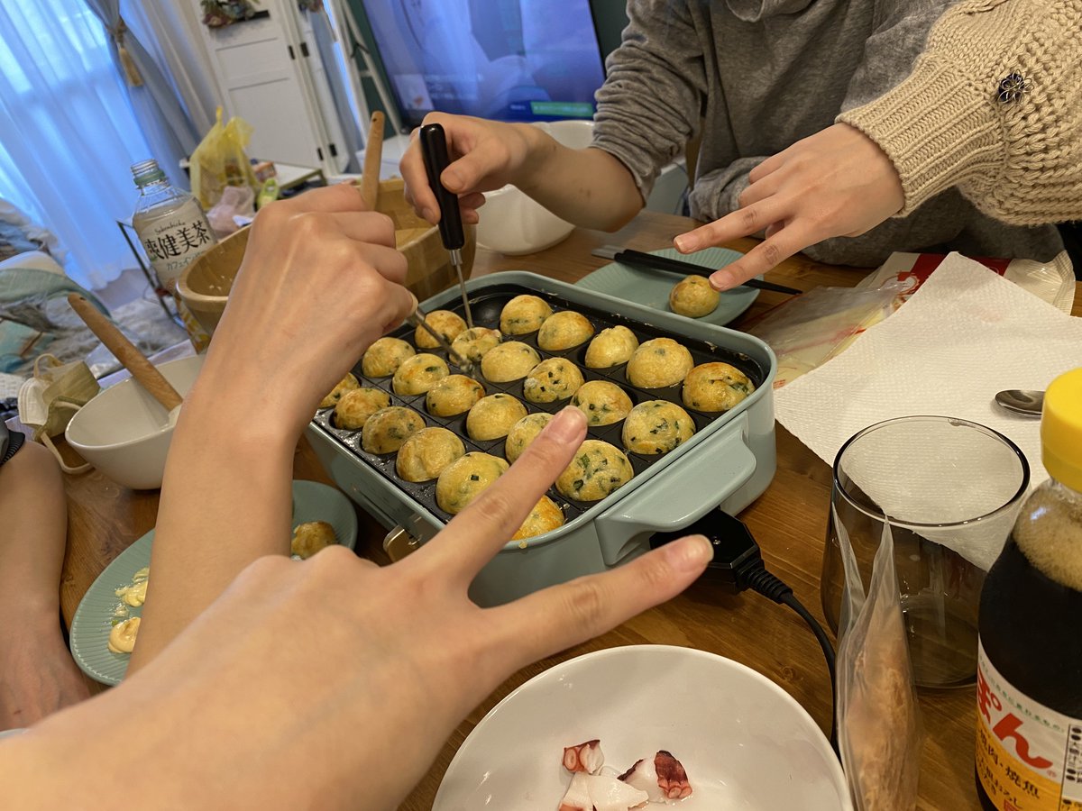 ※捏造 ※Cosplay 原神捏造私服でタコパ〜! 申鶴さん難しい儚いってどうするん😇😇😇 アルベド、ガイア、魈、申鶴の謎メンだけどまひさなぎーの安定感😌 また遊ぼうな🥺💕