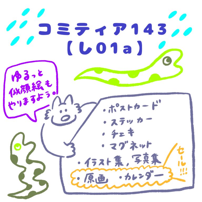 デザフェス2日目! 今日は18時ごろまでいますよ〜 似顔絵は16時くらいまで〜🎨 原画、ポストカード、チェキ 少しですが今日初販売の新作あります‼︎ #デザフェス56 #デザフェス #デザインフェスタ56 #デザフェスRT祭り #リツイート祭り #イラスト #デザフェスお品書き #デザフェス56お品書き