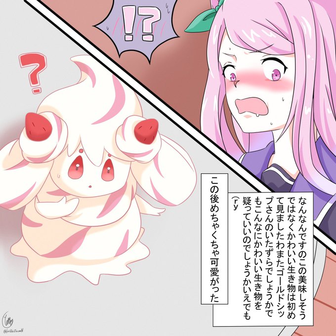 2 3 #作画カロリーの低い作品を上げようぜ #絵描きさんと繋がりたい マホイップとマックイーン、運命(?)の出会い 23/03/29 12:44