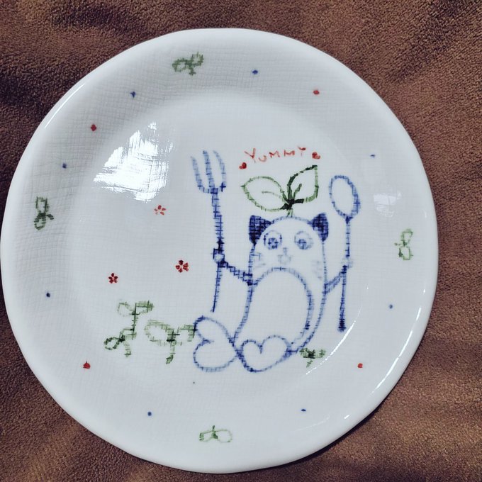 #まめねことレオス 絵付体験で描いた🐱🌱 ちょっとお顔が薄くなっちゃったね