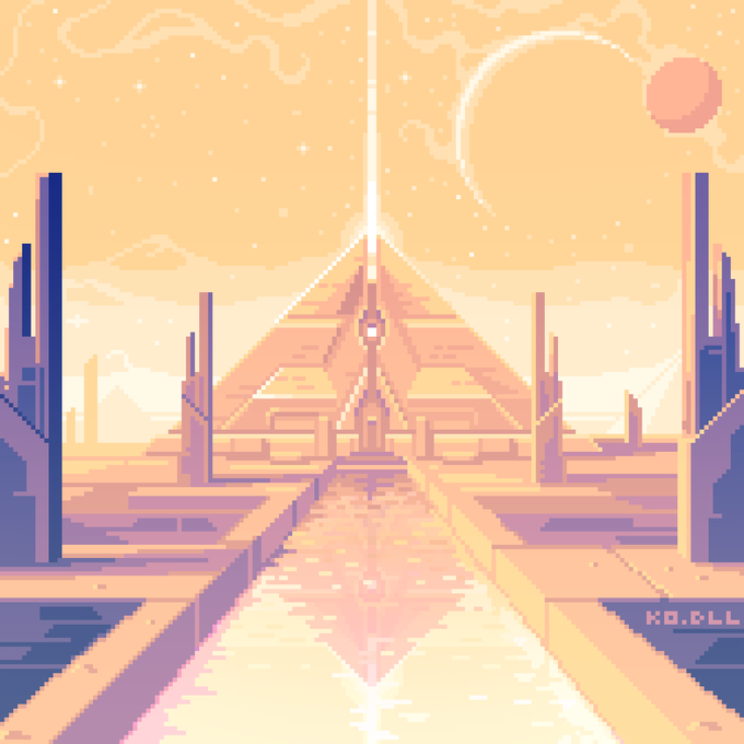 A very distant place - tweaked details and reflection #pyramid for @Pixel_Dailies #pixel_dailies #pixelart