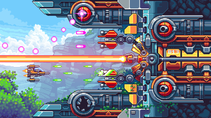 Epic Boss Fight! And yes, it is from my Bzzzt game - particularly boss stage no. 20. Check out the cute robot in the cockpit :) And why SHMUP? With Bzzzt I wanted to pay tribute to '80s games and SHMUPs are one of the most resonating genres in my memory. #pixelart #pixelartist