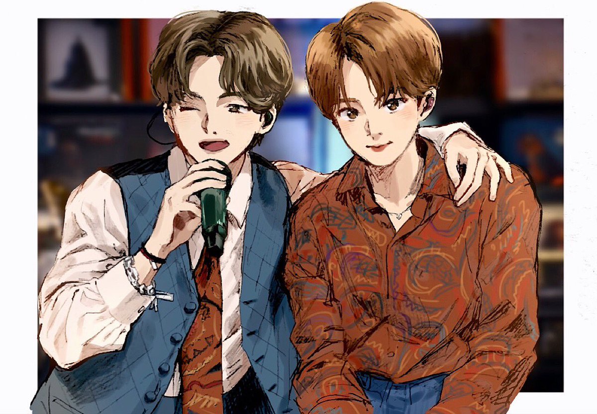 ててじん描いた🐹🐯💜 #btsfanart #V #JIN #taejin #BTSxTinyDesk