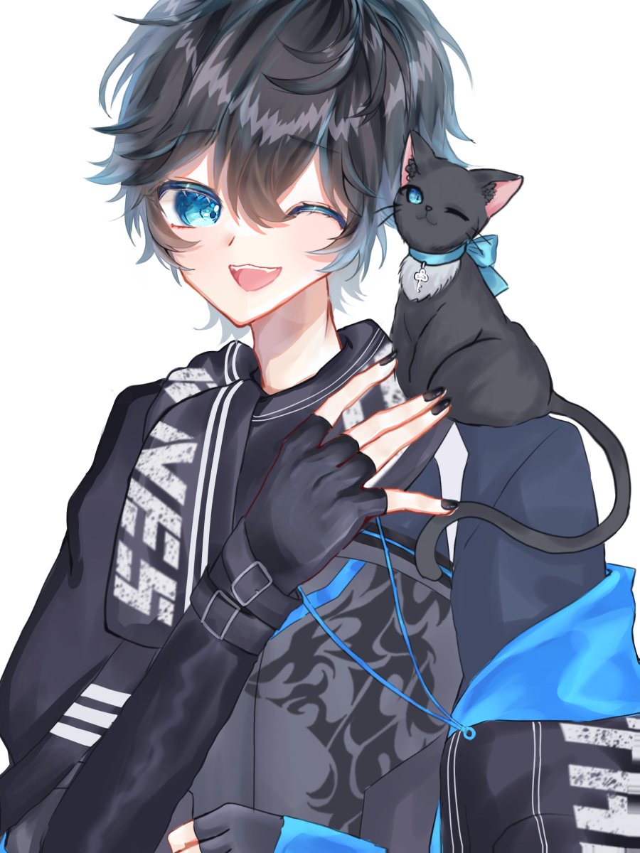 #にじさんじ五十音順に描いたら童田明治の時には画力上がってる説 #AXIART 4人目です!アクシアくん!! 猫っぽいイメージ強かったのでねこちゃんと一緒にいてもらいました 描くの楽しかった!!!!