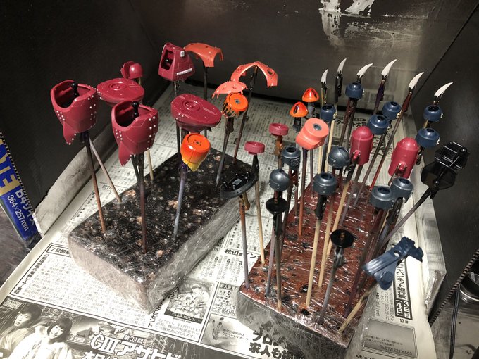 針金と… 新聞紙と… マスキングテープで… 見よう見まねで作ってみました…🙄💭 あと塗装したら、ヤシの木っぽくなるかな?🙄💭✨🌴 #ガンプラ #ズゴック #人類ファイヤーズゴック補完計画 #ヤシの木 #光合成は出来ません