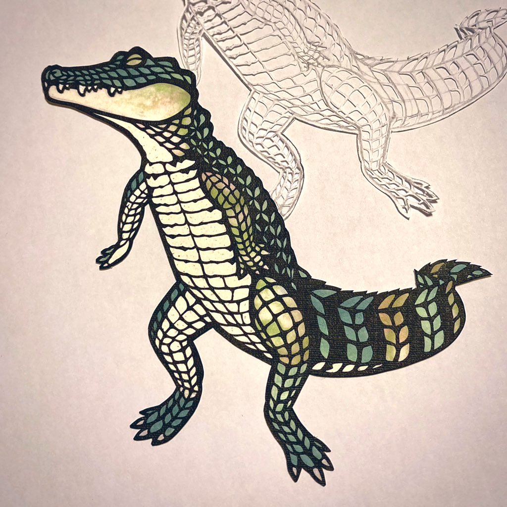 ぎゃんかわなワニ🐊キーホルダーが出来たからみんな遊びにきてねーーー! 「アクアティックライフ展4」 2月9〜12日(前期)16〜19日(後期) 水道ギャラリー(東京/江戸川橋) #アクアティックライフ展4 #切り絵