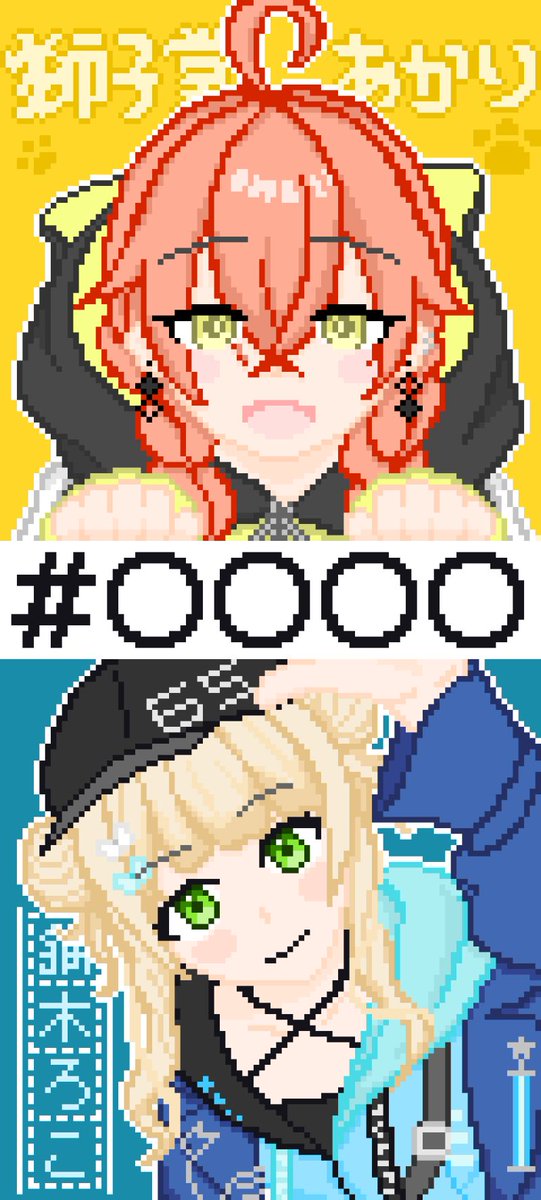 ハッシュタグを挟んで、下から飛び出た低身長あかぴゃんと、上から覗き込むように顔を出す高身長ろってぃの構図よくない!? コラボ名はいつ決まるかな〜((o(´∀`)o))ワクワク #獅子どろーいんぐ #らくがきろこ