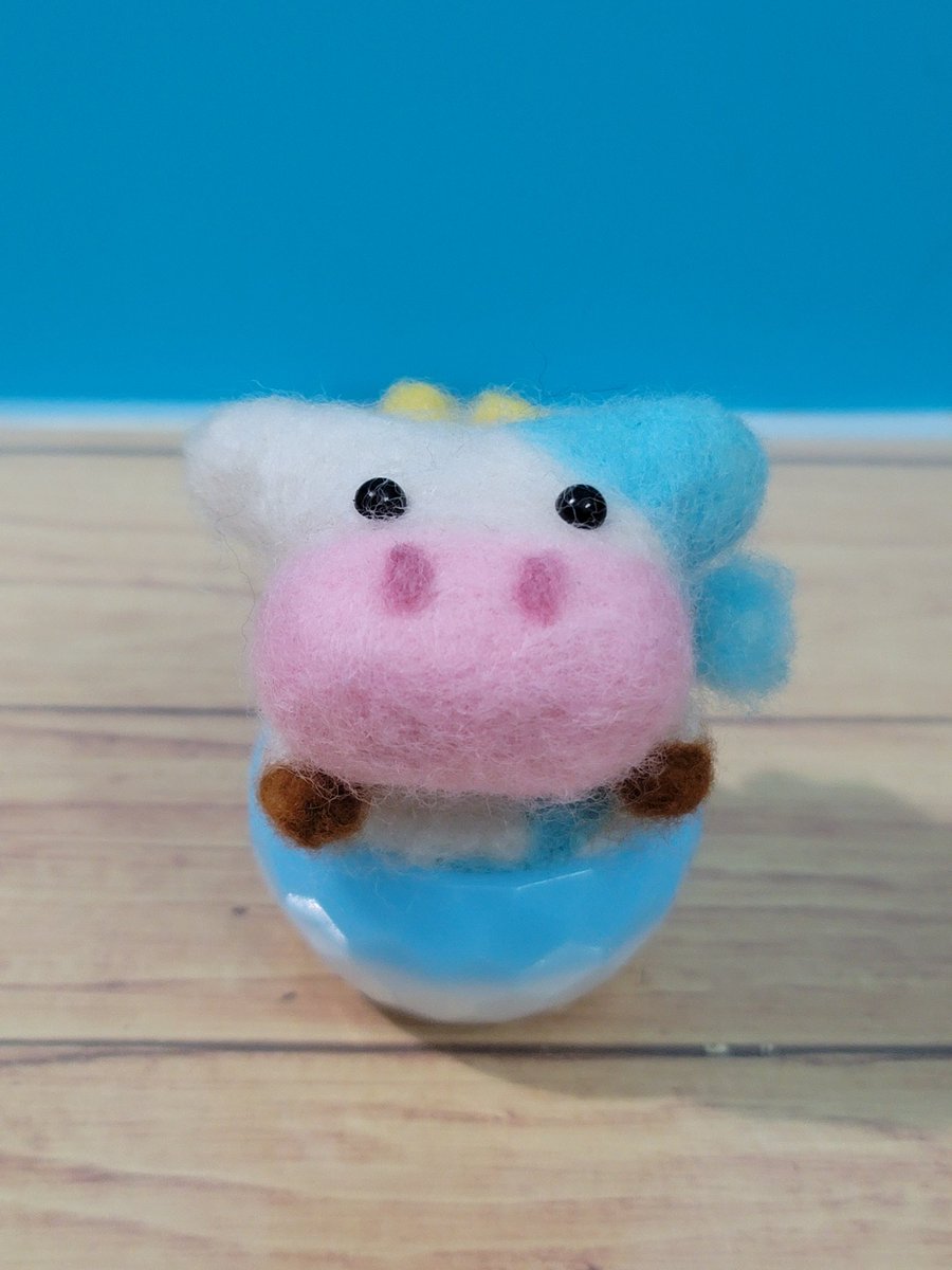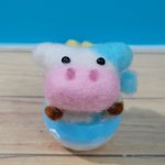 2 19 #カフェだんだら さんからお迎えしたうっしーくん🐮は、先程レジンで作っただんだらお猪口に入っていただきました~~~♥ #来年は丑年 #羊毛フェルト 20/12/20 00:12