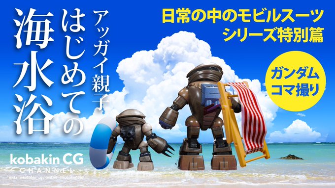 #8月になったのでフォロワーさんに自己紹介しようぜ 新作動画 『アッガイ親子 はじめての海水浴』 お父さんに連れられ、はじめて海に来た子アッガイ そこで待ち受けていたものは!? YouTubeで公開しました✨ ⬇️ youtu.be/T8AaAqv7y74 是非ご視聴ください😊