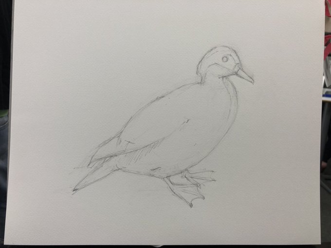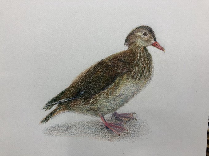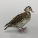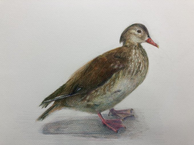 0 4 オシドリ雌剥製 2時間 #色鉛筆画 20/08/03 22:31