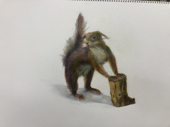 0 7 リス剥製 #色鉛筆画 20/10/04 15:15