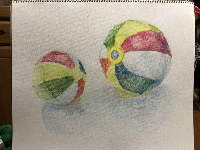 了 #色鉛筆画 #紙風船 重々しい紙風船になりました(ガックリ _| ̄|○