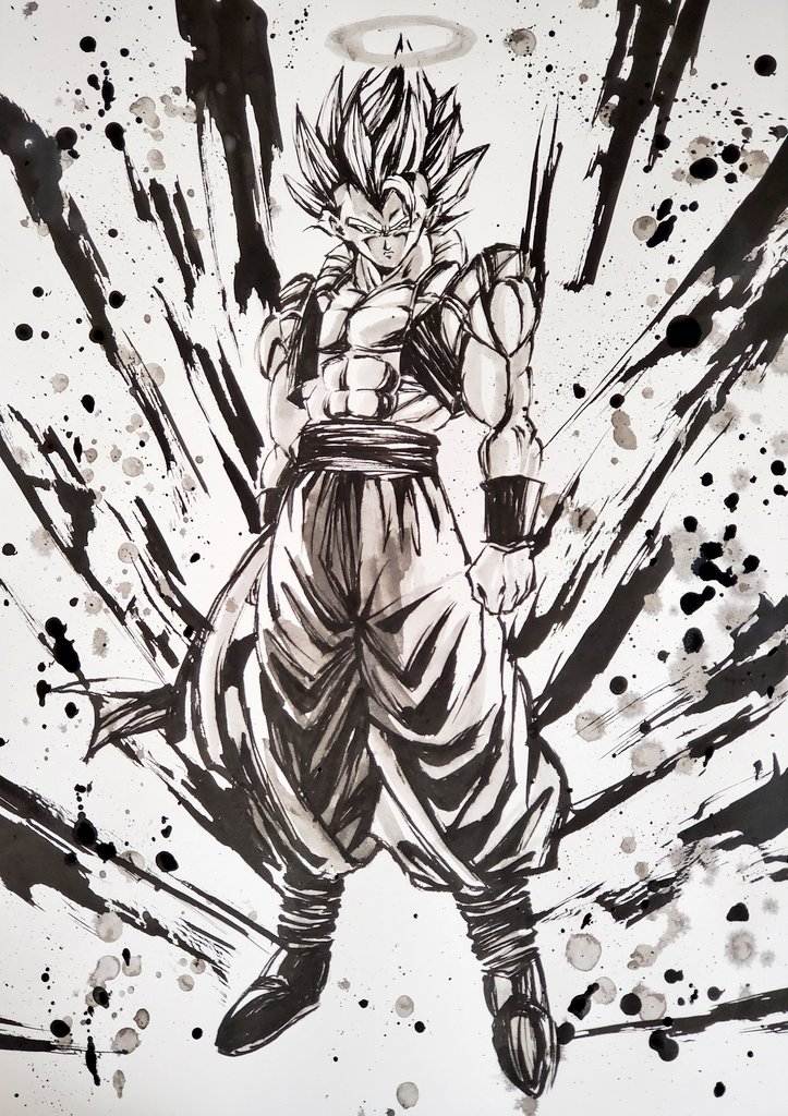 🥐ゴジータ描きました🥐 #ドラゴンボール #DragonBall #模写 #墨絵 #イラスト