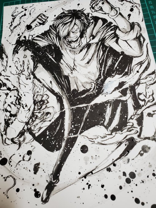悪魔風脚…! #ワンピース #ONEPIECE #サンジ #模写 #墨絵 #イラスト