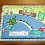 0 8 おはようございます🐤 今日は旦那さんのお誕生日🎂 昨日作ってたのはバースデーカードでした🐸 家族4人のカエルたちw お父さんガエルは動きます👍 #lawnfawn #コピック #塗り絵 20/04/19 09:34