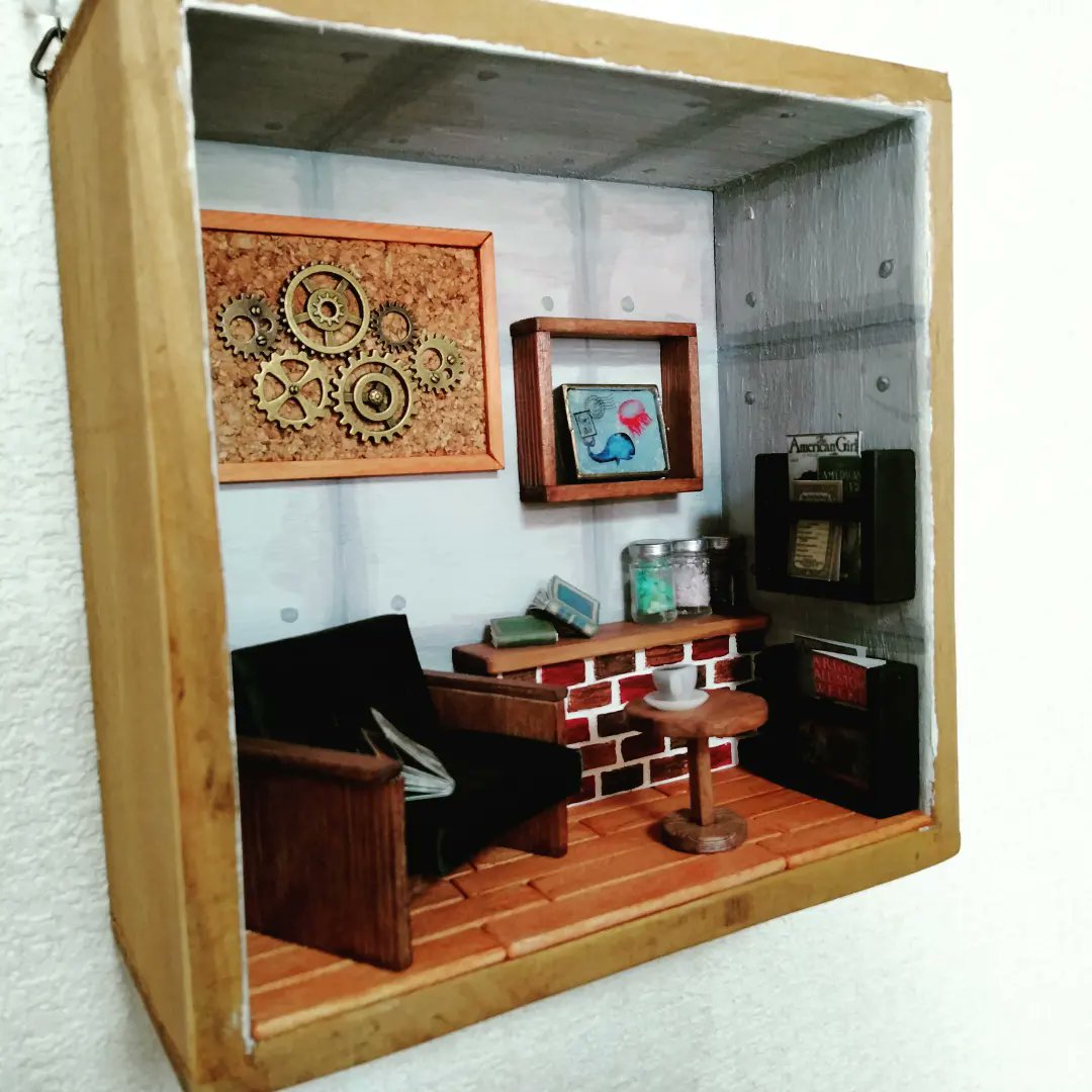 今回のドールハウスの壁はコンクリの打ちっぱなし風なんですが、アクリル絵の具で模様を描きました🖌👍✨(娘に『お母さん天才』と言われた🤣) 床は最初カーペットの予定でしたが、何か違うと思ってフローリングにしました😊 #ドールハウス #ミニチュア #ハンドメイド #ドール #miniature