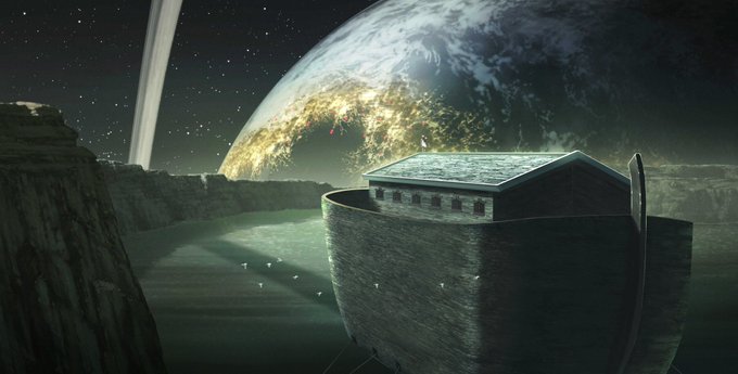 昔に描いたイラストをリメイク。 「現代版のノアの方舟」 何で髪を黒くしたんだろう🤔 #イラスト