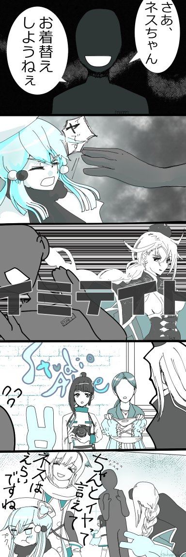 大変。ネスちゃんに怪しい影が。(棒) ※ネスちゃんが幼児です。 ※汎用ウサギ着ぐるみ型マスターがいます。 #ファンキルファンアート