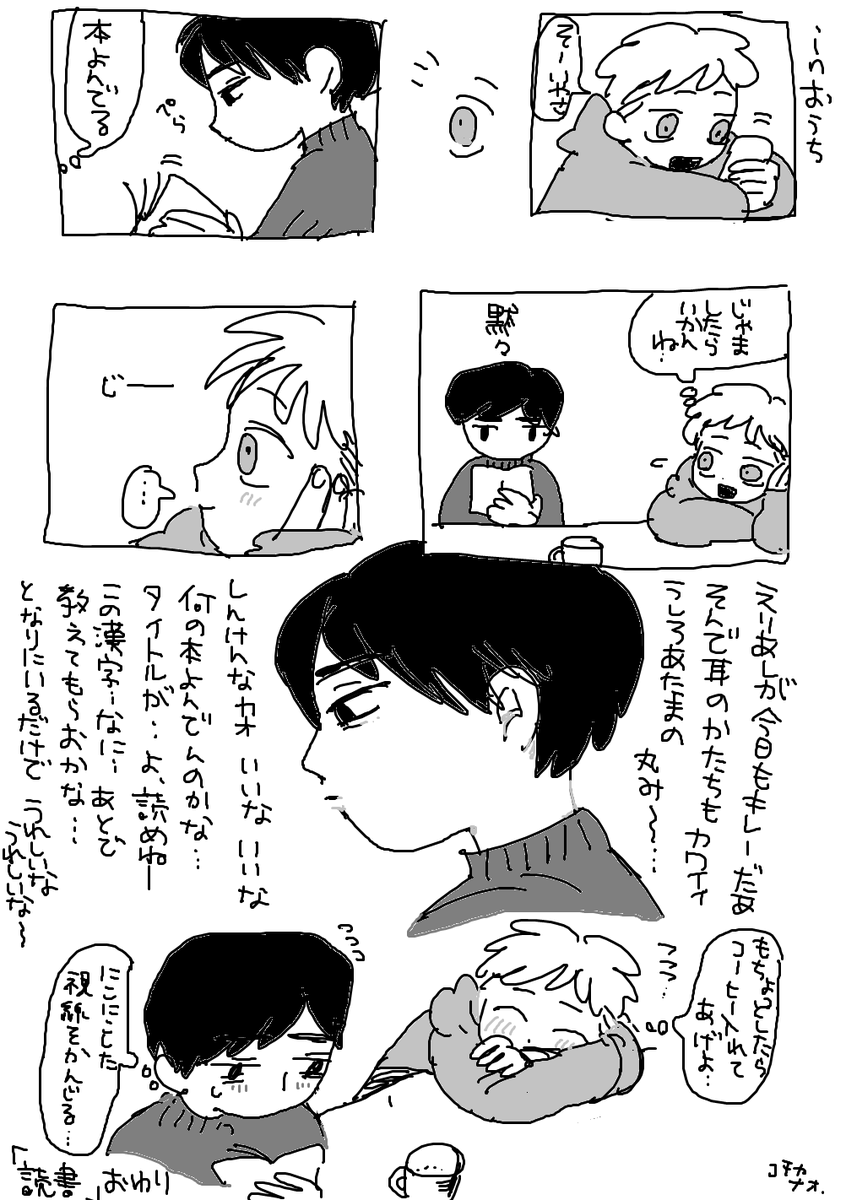 【サンプル①】 タイトル「シノとハツシモ」 A5/無線綴じ綴じ/26ページ/300円(予定) シノとハツシモというカップルののんびりした日常まんが3つです 5月5日コミティア144にて頒布、その後通販予定です 続くツイートに部数アンケートあります #コミティア144 #COMITIA144