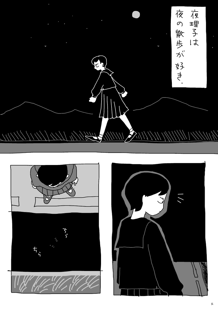 【サンプル①】 タイトル「月夜の夜理子さん」 A5/中綴じ/52ページ/600円(予定) 夜理子さんという女の子とおばけのような存在の短編5つ ぜひお手に取って裏表紙も見てみてほしいです 続くツイートに部数アンケートあります #コミティア143 #COMITIA143