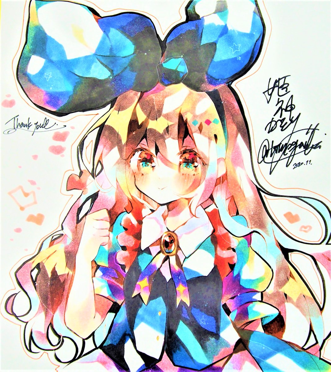 イラストレーターの姫神かをりさんから作品が届いたワン☆ キラキラした可愛らしい女の子だワン♪ #高知市社会福祉協議会 #高知市社協 #社協 #高知市 #チャリティ #色紙 #絵画 #イラストレーター #姫神かをり