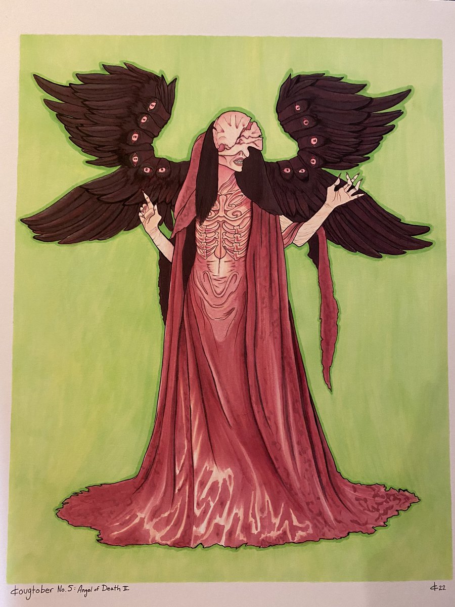Dougtober No. 5: Angel of Death II. I already had the sketch done, figured I’d finish it and make her pink. #inktober2022 @actordougjones @RealGDT #hellboy
