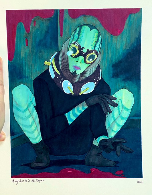 Dougtober No. 8: Amphibian Man from The Shape of Water. I saved my favorite movie for last! thank you from the bottom of my heart to everyone who followed along, and to @actordougjones, for the characters and stories that have always felt like home 💙 #inktober2022