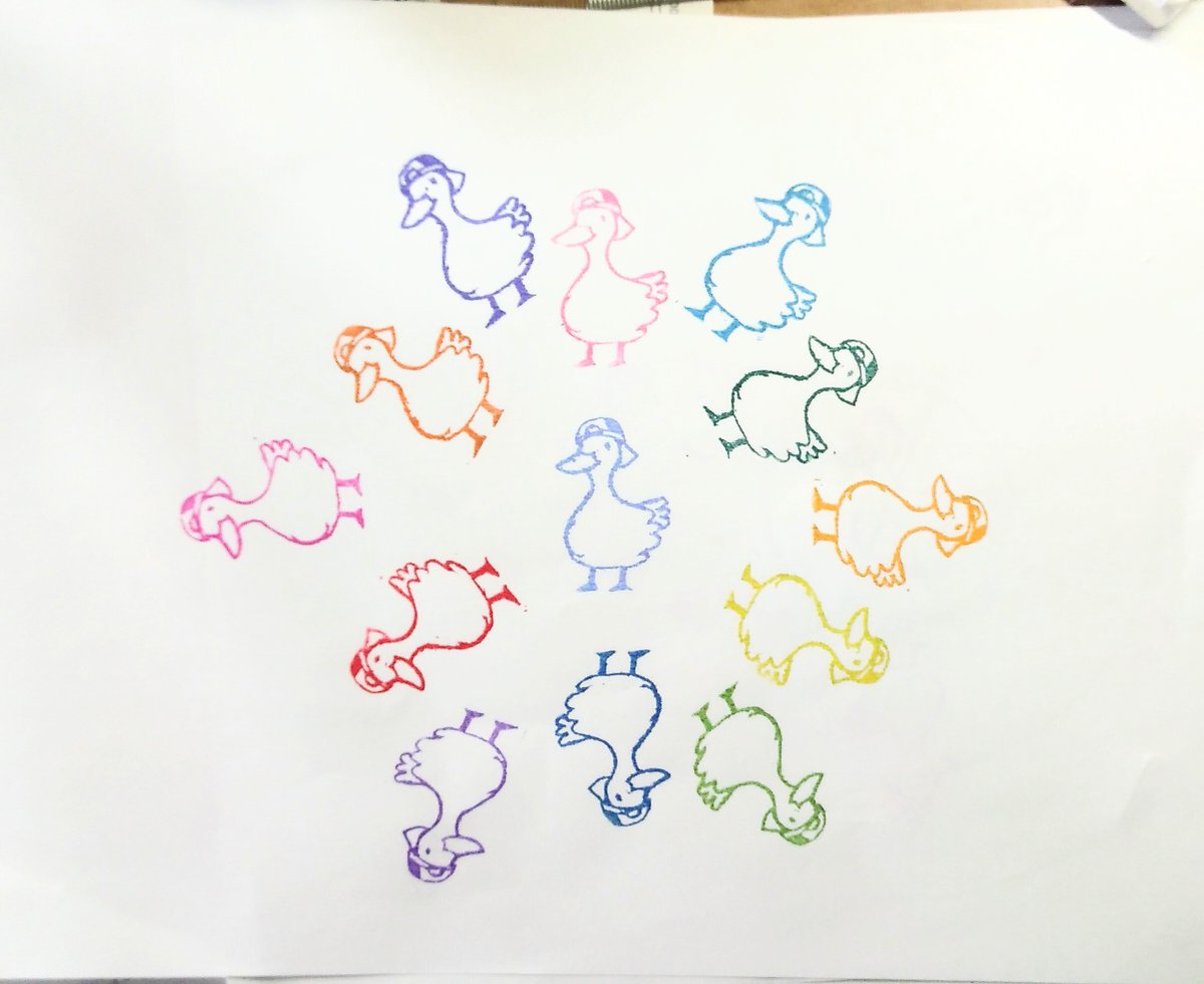 がんもの消しゴムはんこ完成!今回は飛んでいるポーズにチャレンジしてみました! #鷹嶺ルイ #Luillust