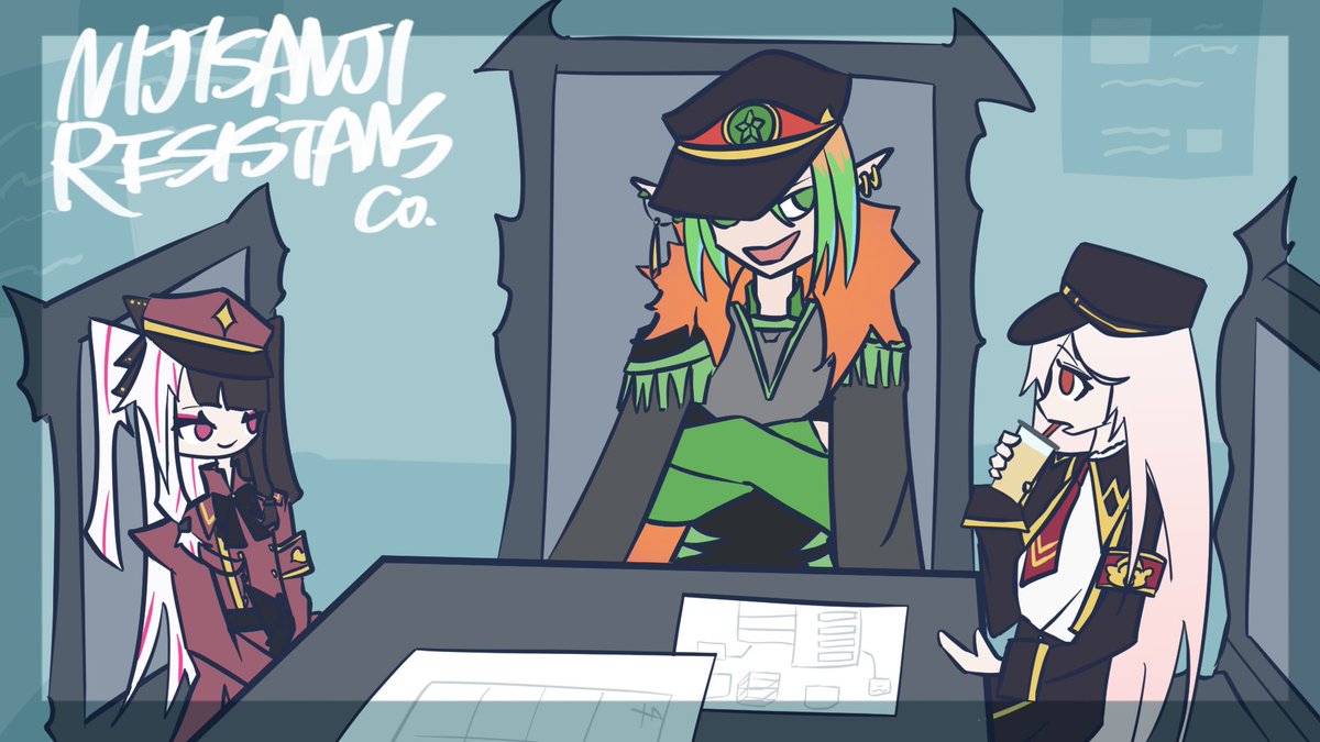 にじレジ(株) 軍服会議 #れなの鳥っくあーと #お花畑青空大写生大会 #しいなーと
